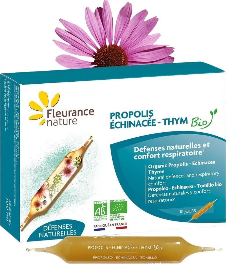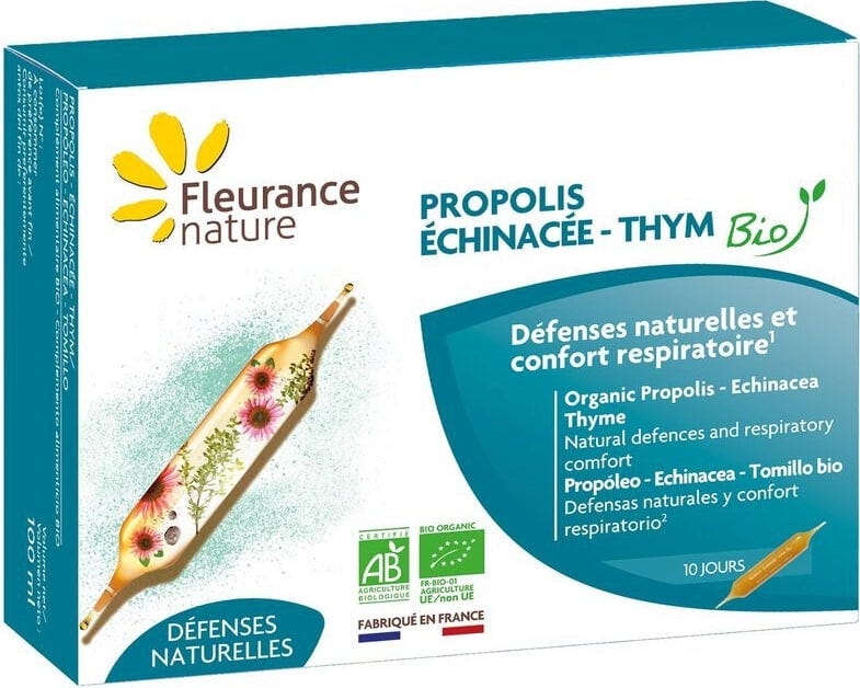 Fleurance Nature Organic Propolis, Echinacea and Thyme, 10 Ampoules
