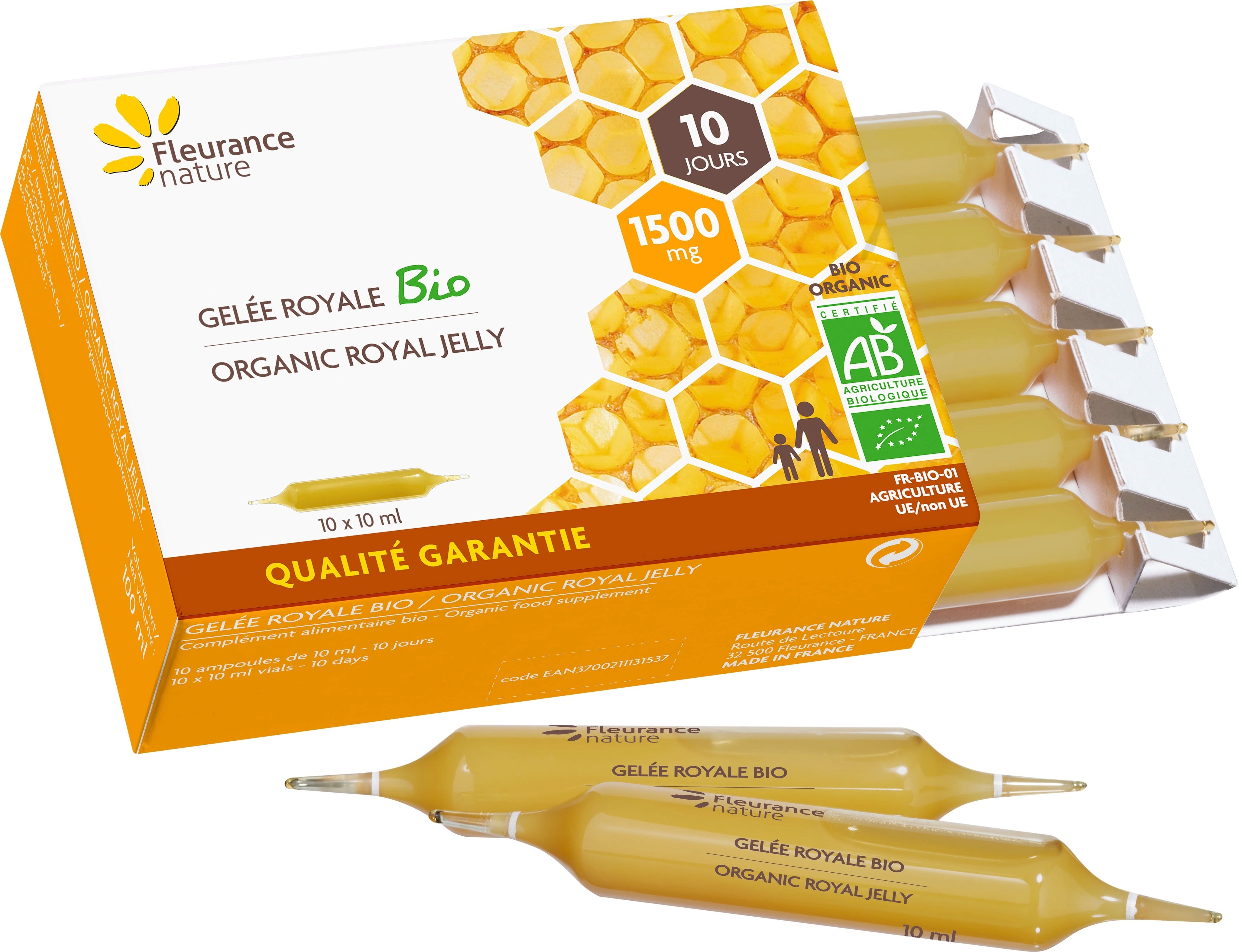 Fleurance Nature Organic Royal Jelly 1500mg, 10 Ampoules