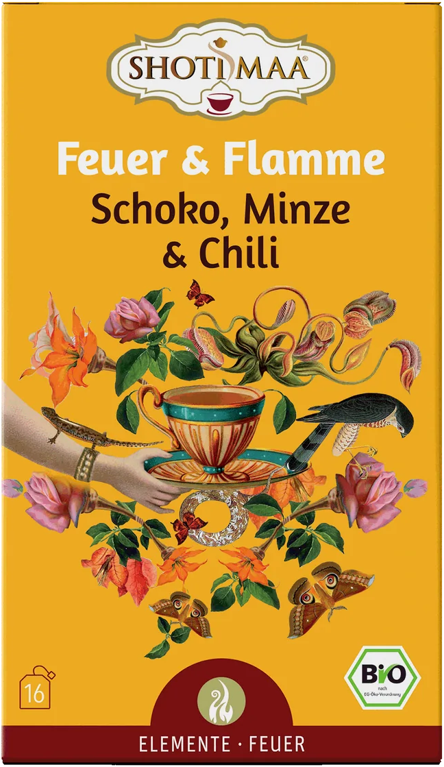 SHOTI MAA Organic Tea Feuer & Flamme (Purity Flame) - Chocolate, Mint & Chili, 16 tea bags (32 g)