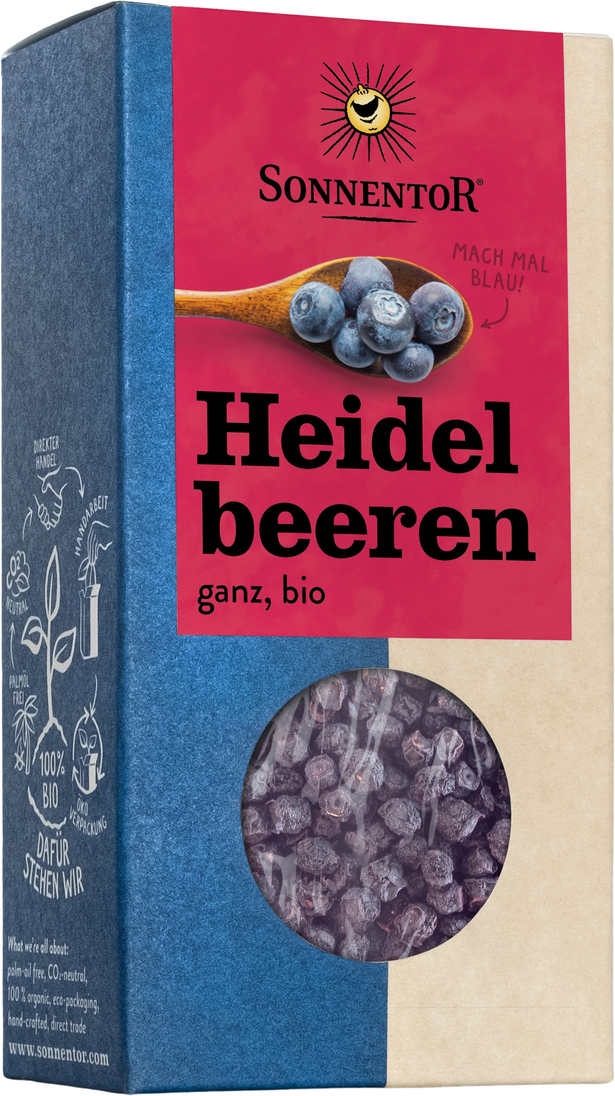 These dried blueberries are not cultivated blueberries, but wild grown. This can be recognized through their dark blue colour. The blueberries taste just wonderful; they have a slightly sweet and mildly sour taste and should be soaked before use to let them fully develop their flavour.